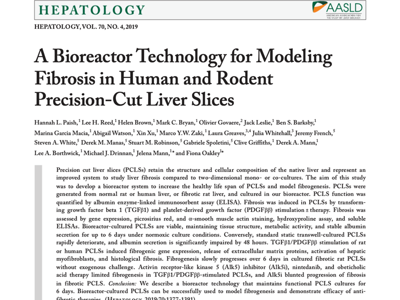 The FibroFind precision-cut liver slice model and its proprietary tissue bioreactor technology was vital to this work.