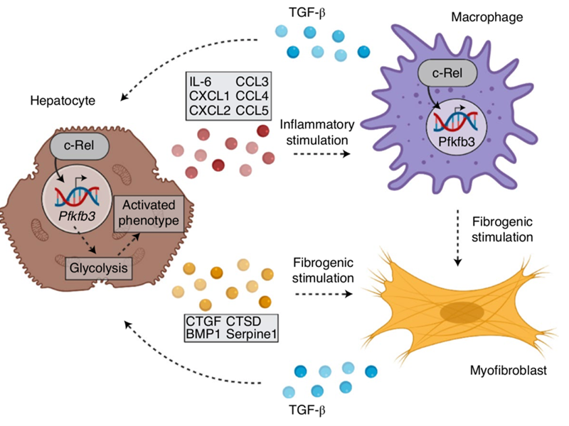 Here FibroFind scientists collaborated in a study led by Professor Fiona Oakley (FibroFind founding scientists and Director) that describes how a factor (c-Rel) that is best known for its role in the immune system also controls metabolic processes that are important for fibrosis. The identified c-Rel/Pfkfb3 pathway is proposed as a target for the development of anti-fibrotic drugs.