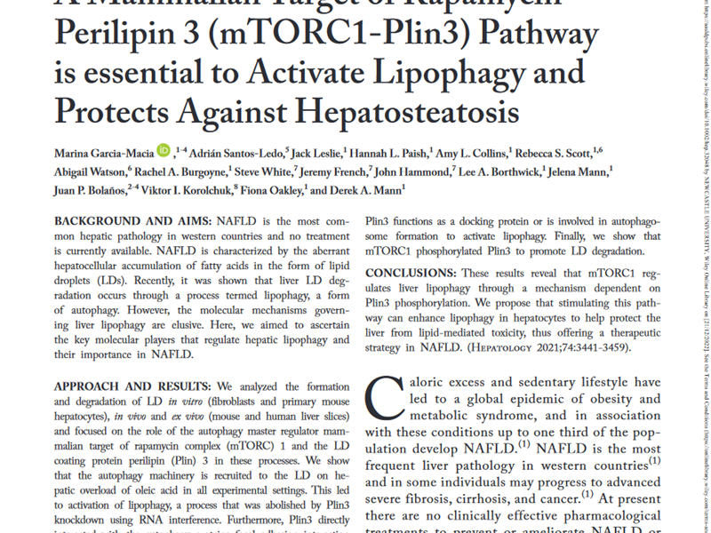 Paper that describes a new molecular pathway mTORC1-Plin3) by which liver cells break down lipids to protect the liver from development of fatty liver disease which can progress to cirrhosis and/or cancer. Fibrofinds precision cut liver slice technology was an important feature of the experimental work in this paper and reported for the first time that fat metabolism can be studied in our liver slice model system.