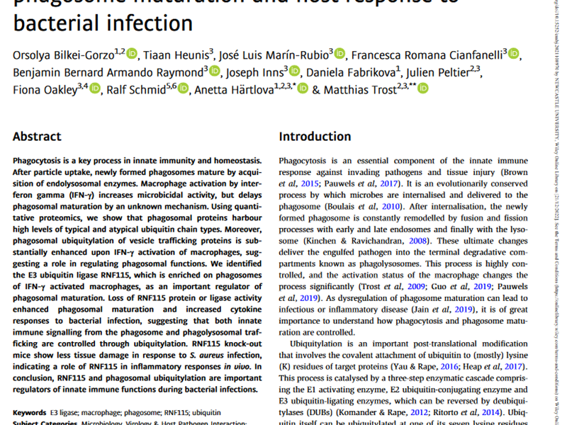 This paper is a collaboration with Matthias Trost at Newcastle University. – Provides new insights into how bacterial infections are cleared by macrophages (a specialist immune cell).