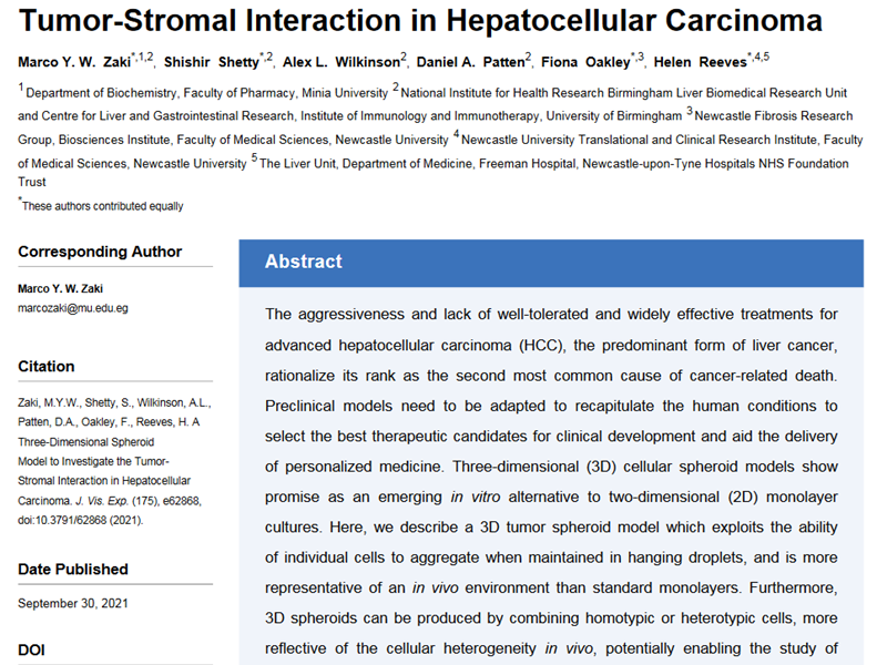 Copyright © 2021 JoVE Creative Commons Attribution 3.0 License jove.com September 2021 • 175 • e62868 • Page 1 of 15 A Three-Dimensional Spheroid Model to Investigate the Tumor-Stromal Interaction in Hepatocellular Carcinoma