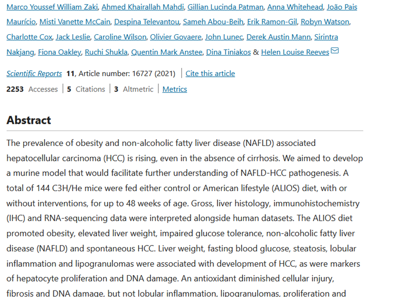 Collaborative study with a top liver cancer team in Barcelona where we reported the ability of a cancer drug Lenvatinib to combine with immunotherapy to stimulate the immune system to suppress the growth of liver cancers. Our contribution was providing key data using a new in vivo experimental model for liver cancer developed in the NFRG.